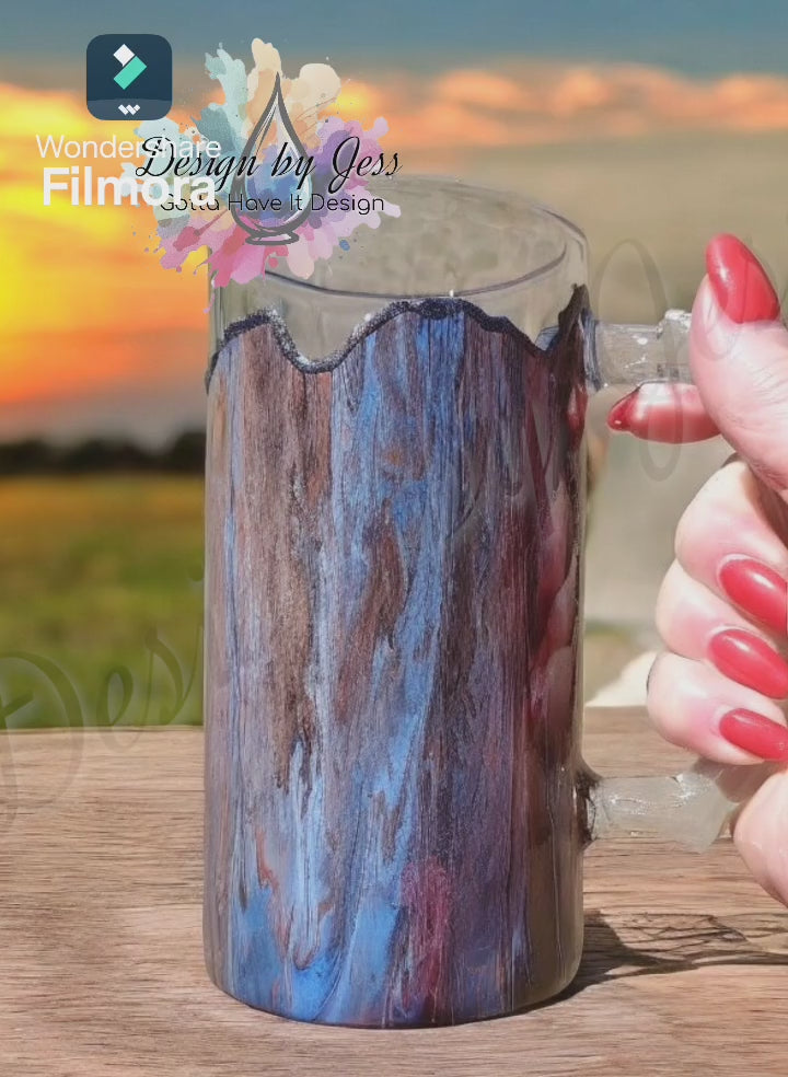 This custom glass beer mug showcases a distinctive handmade design, created with paint and sealed in resin to provide a unique, eye-catching appearance from every angle. A unique piece of function art that is a thoughtful gift for dads, brothers, groomsmen, or any beer lover. Perfect for birthdays, weddings, Father’s Day, or as a special treat for yourself, this mug blends artistic craftsmanship with practical use for an exceptional drinking experience.