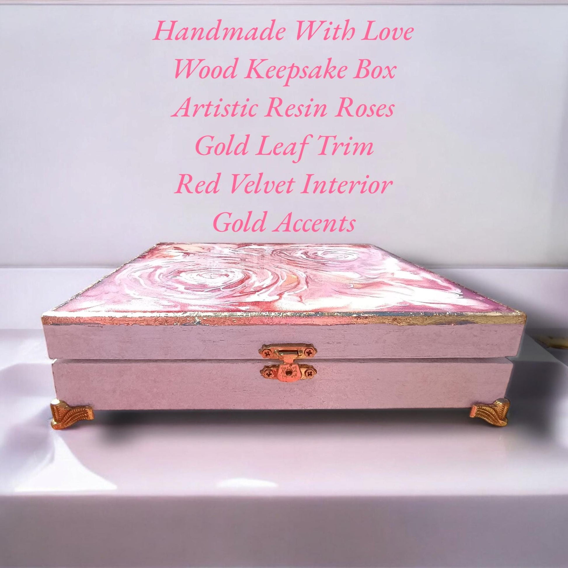 Transform gift-giving with this stunning one-of-a-kind wooden keepsake box that combines artistry with functionality. This beautiful jewelry organizer features an original artistic Style by Jess, showcasing a pair of gorgeous handmade resin roses on top that capture hearts at first sight.