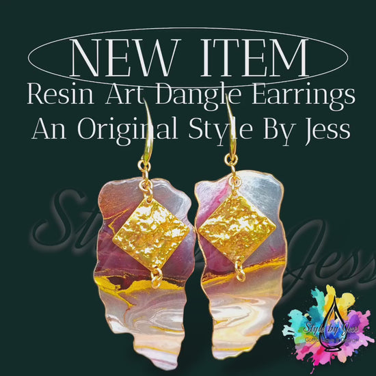 Transform your look with these stunning handmade resin art dangle earrings featuring captivating marble effects and luxurious 18K gold plated hardware. Each pair is a unique work of art that catches the light beautifully a custom design by Style By Jess.