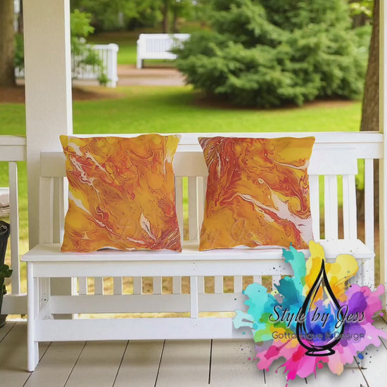 Add a bold burst of sunshine to your outdoor space with this Sunflower Outdoor Pillow featuring original abstract art a Style by Jess. With vibrant hues of yellow, white, and orange, this UV- and water-resistant patio cushion is designed for both comfort and durability. Whether for your porch, patio, garden seating, or balcony, this weather-resistant pillow brings brightness and artistic charm to any setting.